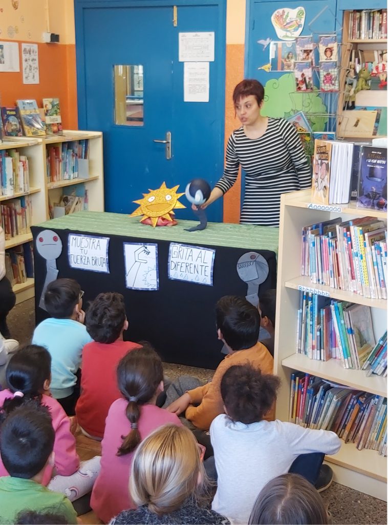 Avui hem tingut la sort de poder sentir dos contes de la mà del servei de feminismes de l’ajuntament de Badalona: Jo vaig amb mi i el país del trons! Dos contes per a reflexionar sobre com tractem als altres i de com n’és d’important estimar-se a un mateix. Aquí en teniu algunes imatges.