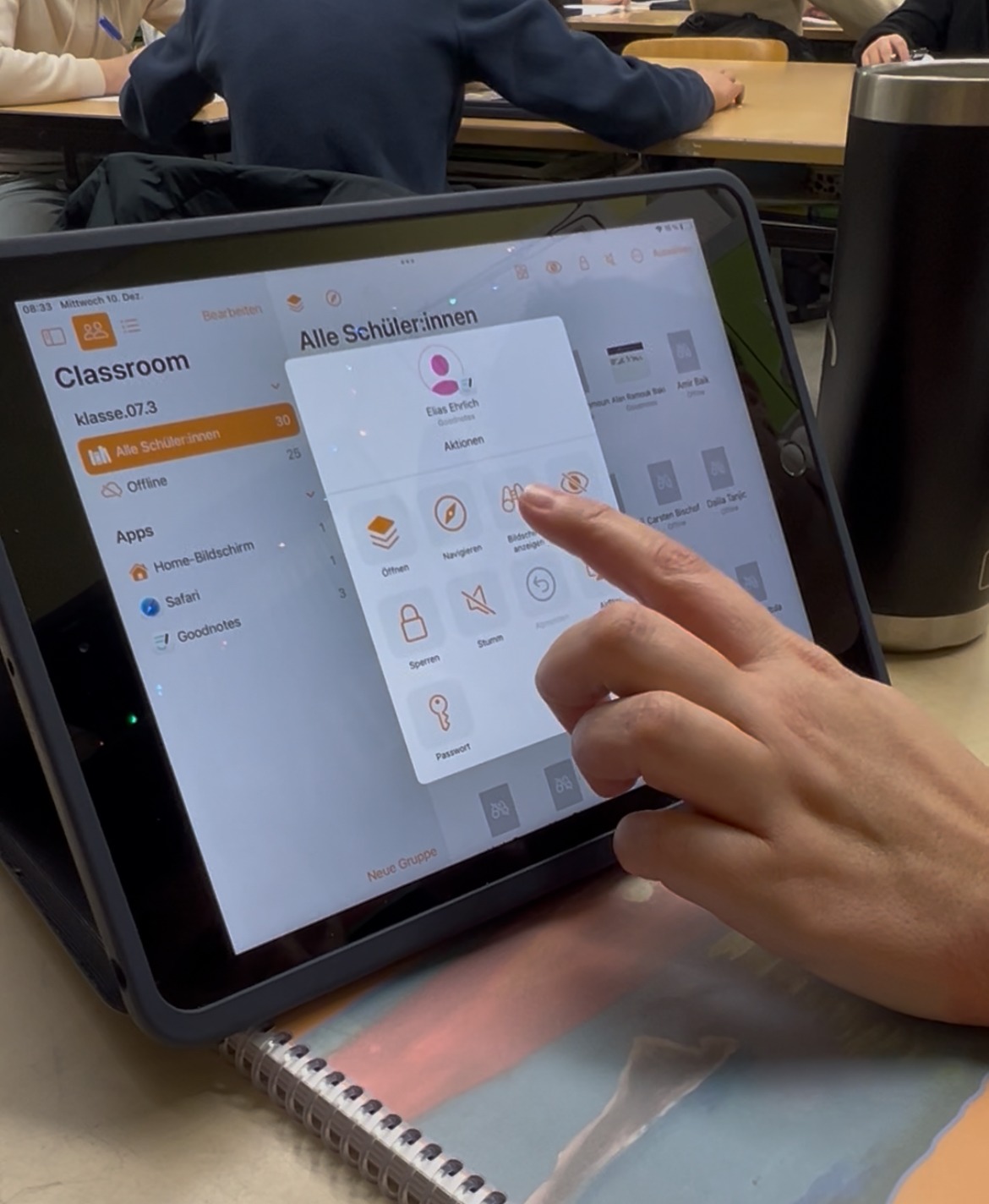 Referent a les tauletes digitals el centre disposa d’una aplicació anomenada “Classroom”, que permet visualitzar en tot moment què està realitzant l’alumnat a cadascún dels dispositius. També és possible veure la ruta de les últimes accions que s’han realitzat i bloquejar o apagar les tauletes en cas que n’estiguin fent un mal ús.