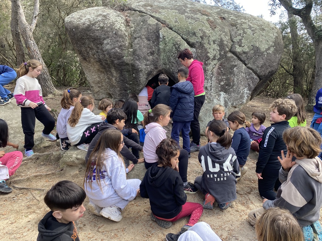 Els alumnes de 3r i 4t hem fet un tram de la ruta prehistòrica. Hem visitat algunes de les construccions megalítiques i els alumnes de 3r han explicat el que han treballat.