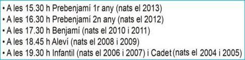 - Prebenjamí i benjamí 25 metres de crol, braça i esquena
