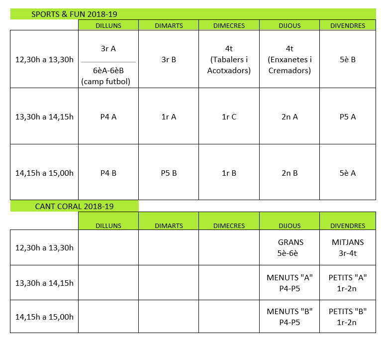 Ja hem començat CANT CORAL i SPORTS & FUN!