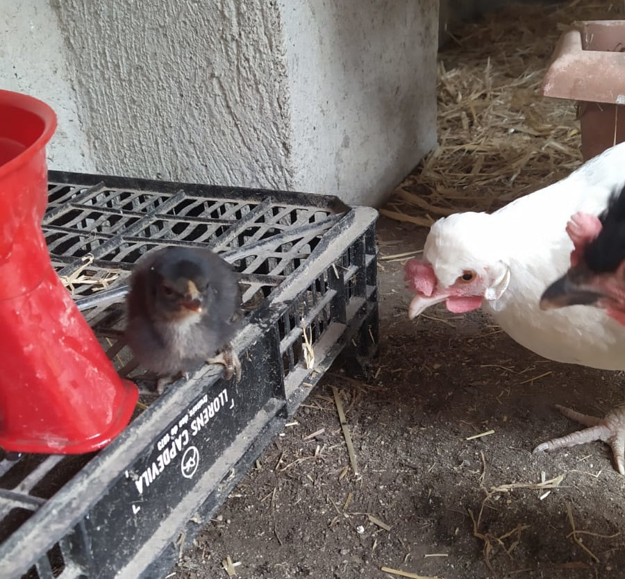 El dia 5 d’abril era Setmana Santa un dimecres i va néixer un pollet a la granja, es diu Bob. No se sap qui és la mare la Negrita o la Blanquita. El que sí que sabem és que l’alimenten les dues gallines.