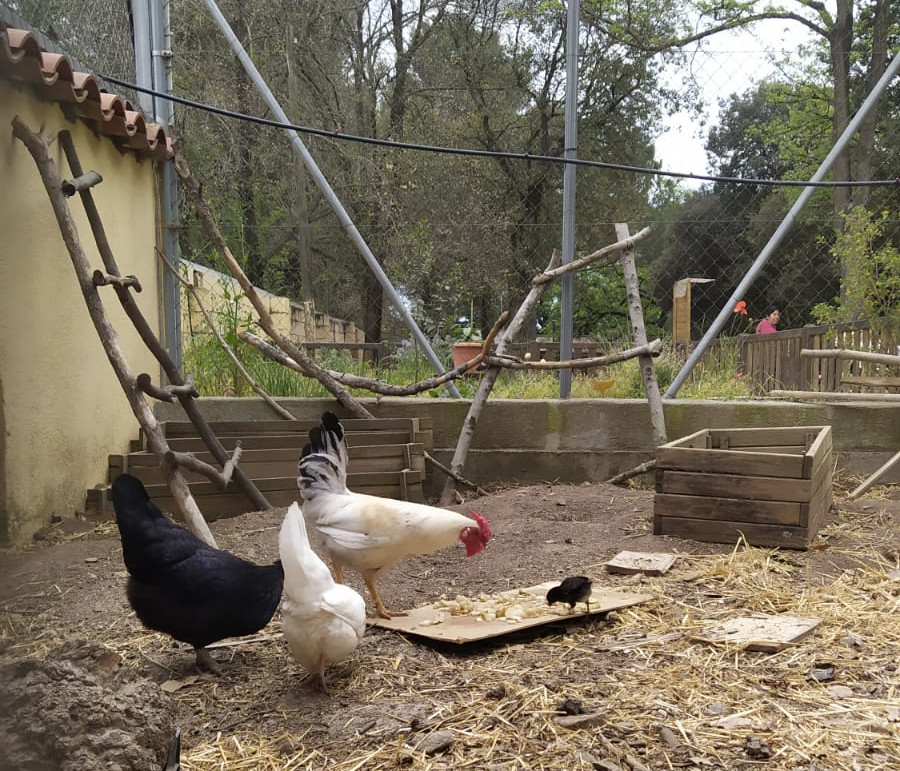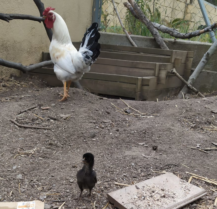 Té el pelatge fosc i creiem que la mare biològica és la Negrita perquè tots dos són negres però la Blanquita té més instint de mare. La Negrita i la Blanquita estan fent forats per trobar cucs i alimentar al pollet Bob.