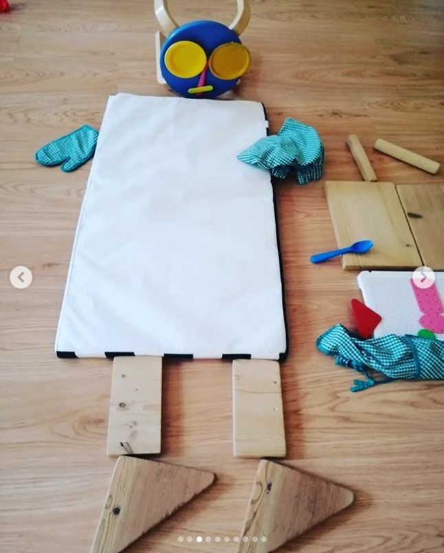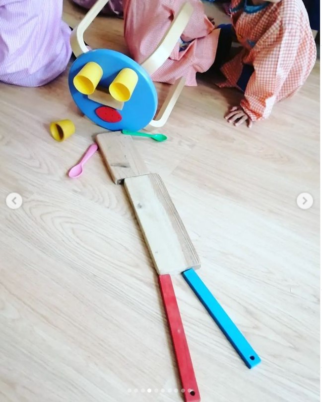 A partir de la geganta, l’alumnat de P4 treballa el cos humà: les seves parts, la construcció, la composició…