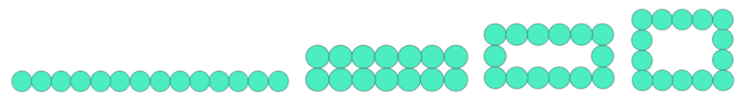 Pretenem que els infants hagin descobert que, amb 14 cercles, es poden aconseguir 2 rectangles plens i 2 de buits: 14, 7 + 7, 6 + 1 + 1 + 7 i 5 + 1 + 1 + 1 + 1 + 5.