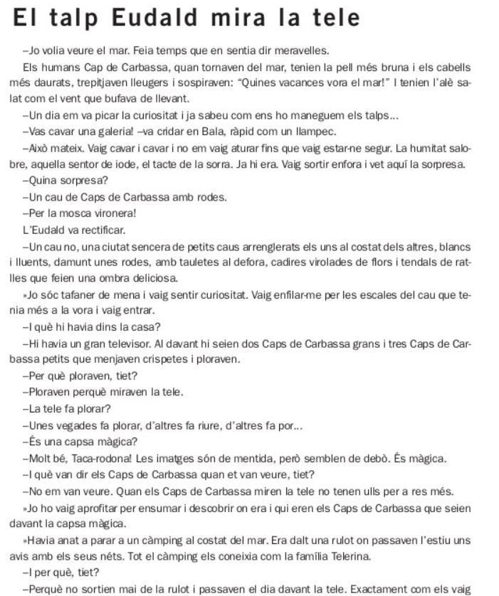 9- A més envia un petit escrit amb la teva reflexió ( si t´ha agradat, si canviaries alguna cosa, que opinen a casa de com has llegit…).