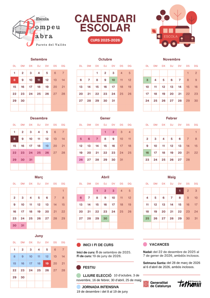 - Presentació de sol·licituds per infantil i primària: per internet del 4 al 18 de març del 2026.