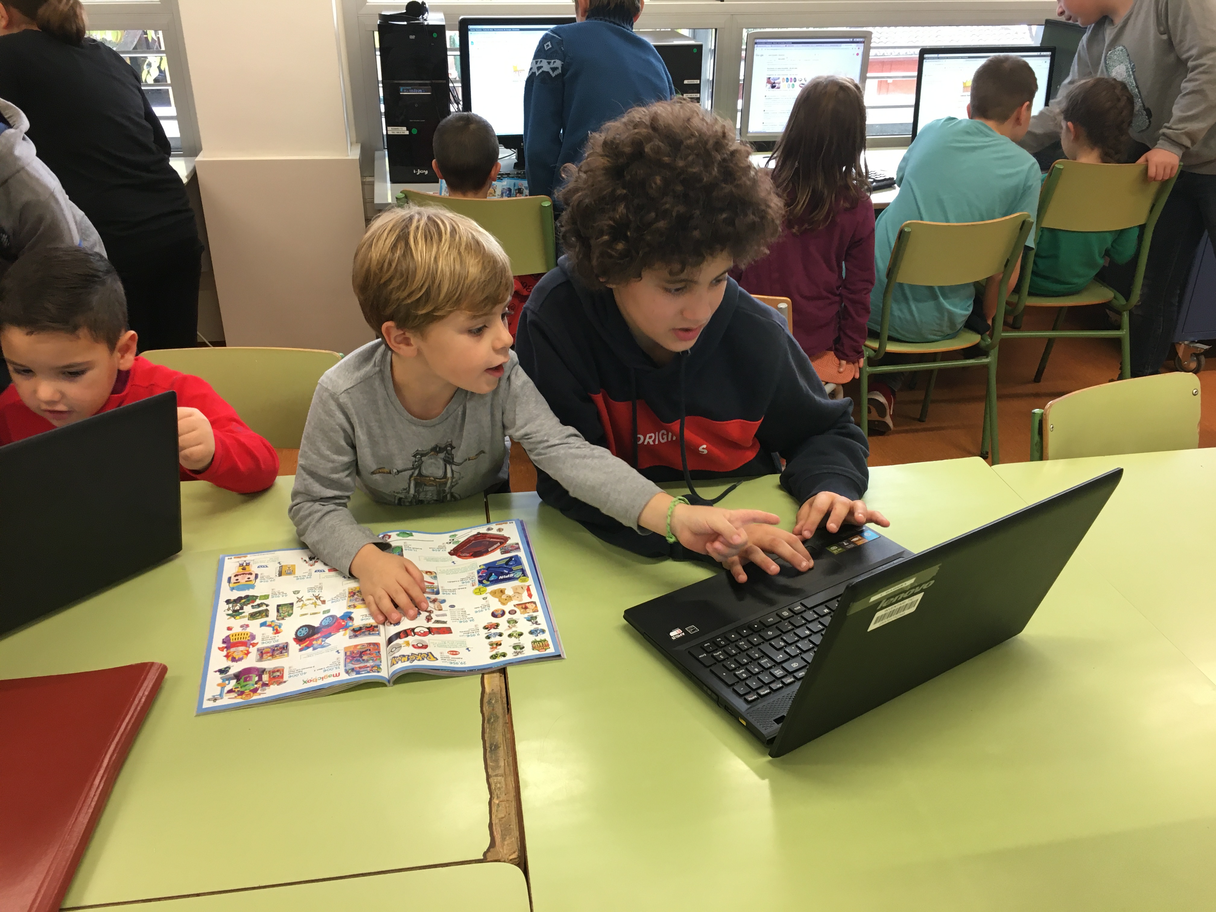 S’ho van passar molt bé mirant els catàlegs de joguines i aprenent a fer servir l’ordinador.