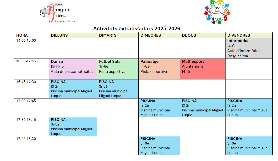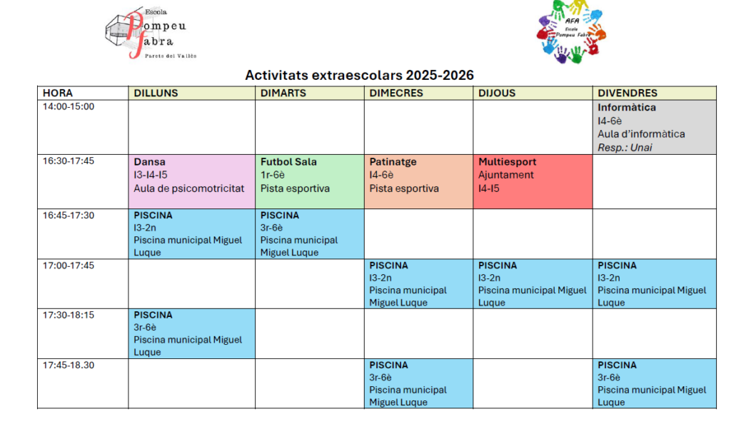 Les activitats extraescolars d’aquest curs 2025-2026 són les següents: