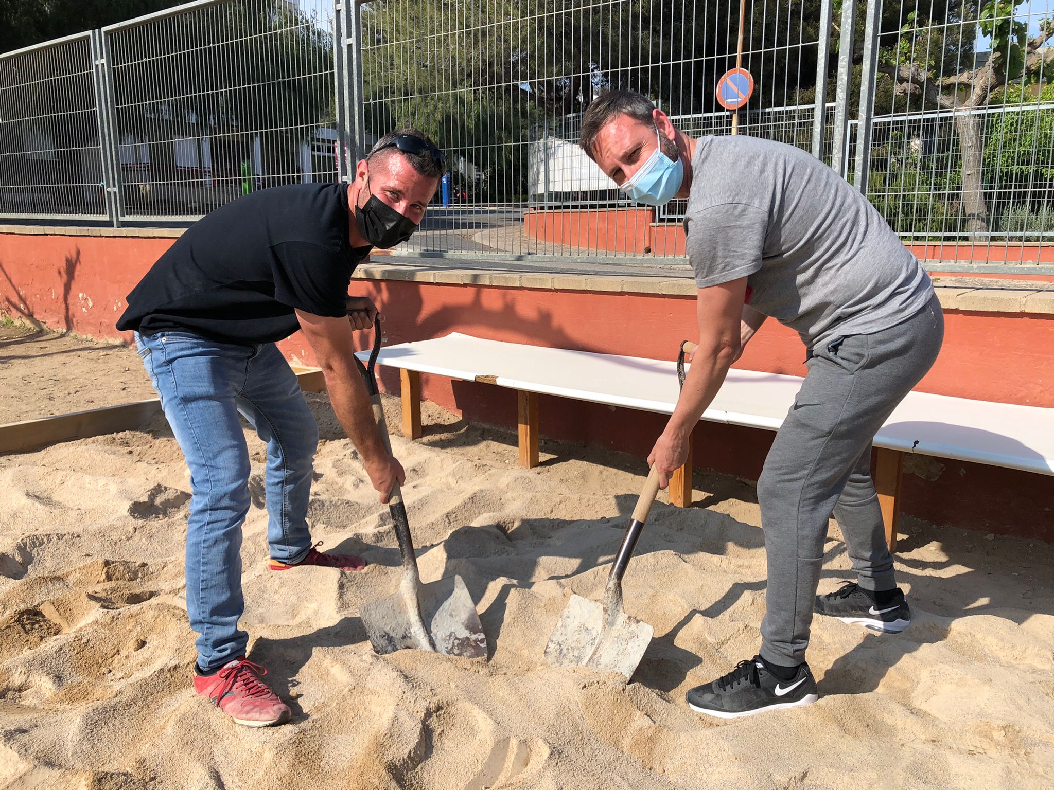 Ahir vam treballar colze a colze Escola i AMPA per a omplir els sorrals del pati d’infantil. Avui els nostres petits han gaudit de valent molt jugant amb la sorra.