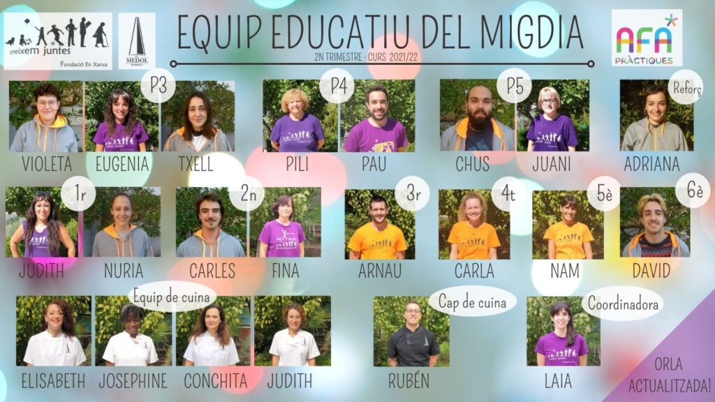 D’aquesta manera podeu posar cara als monitors i monitores dels vostres infants com també a l’equip de cuina que cada dia cuina per ells i elles.