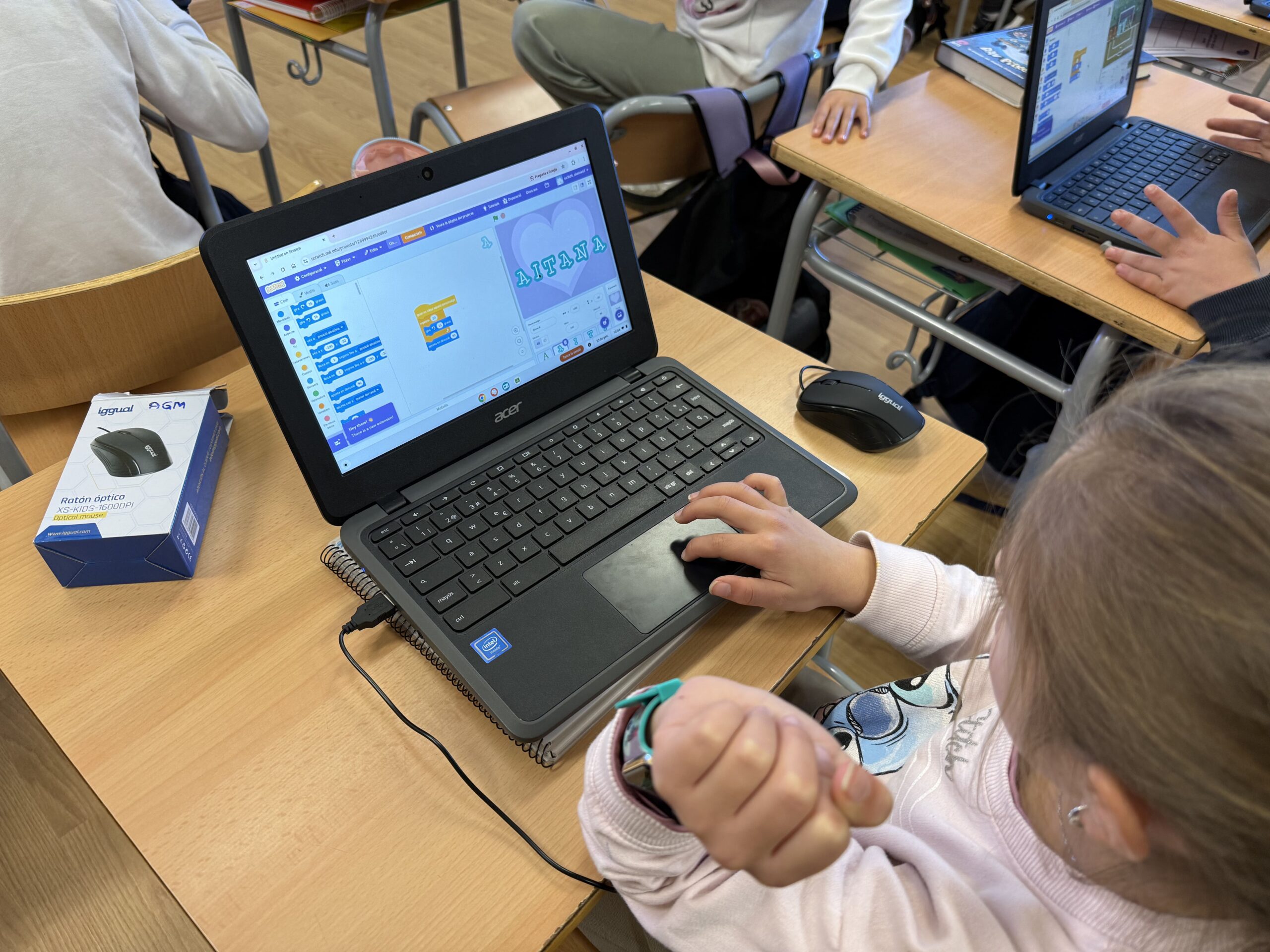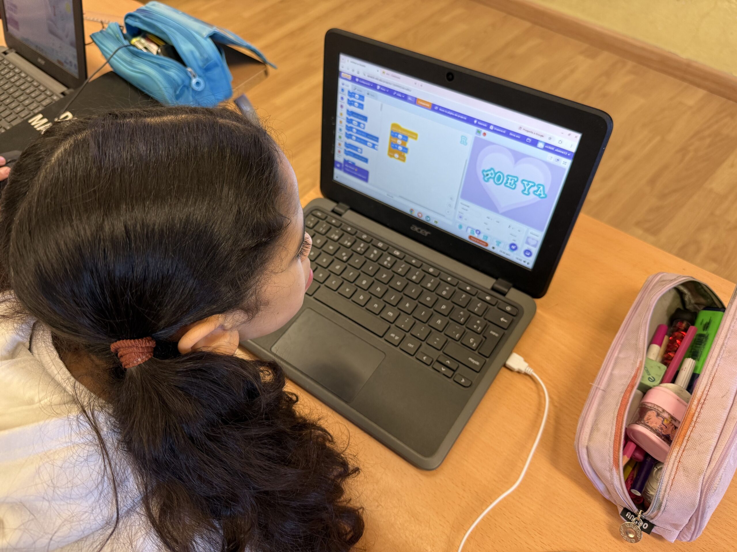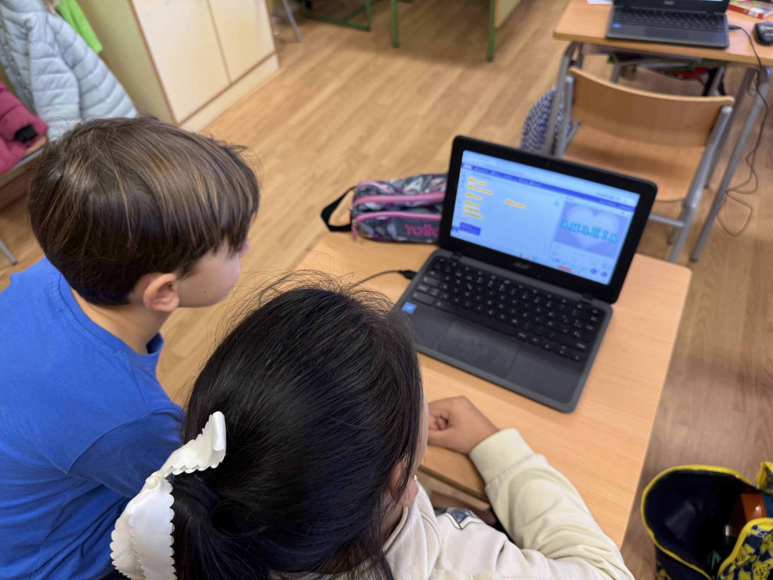 En aquest projecte, els infants estan aprenent a utilitzar Scratch, una eina de programació visual que els permet crear animacions d’una manera intuïtiva i creativa. A partir del seu propi nom, han dissenyat personatges, han afegit fons i han començat a programar moviments i accions perquè les lletres cobrin vida.