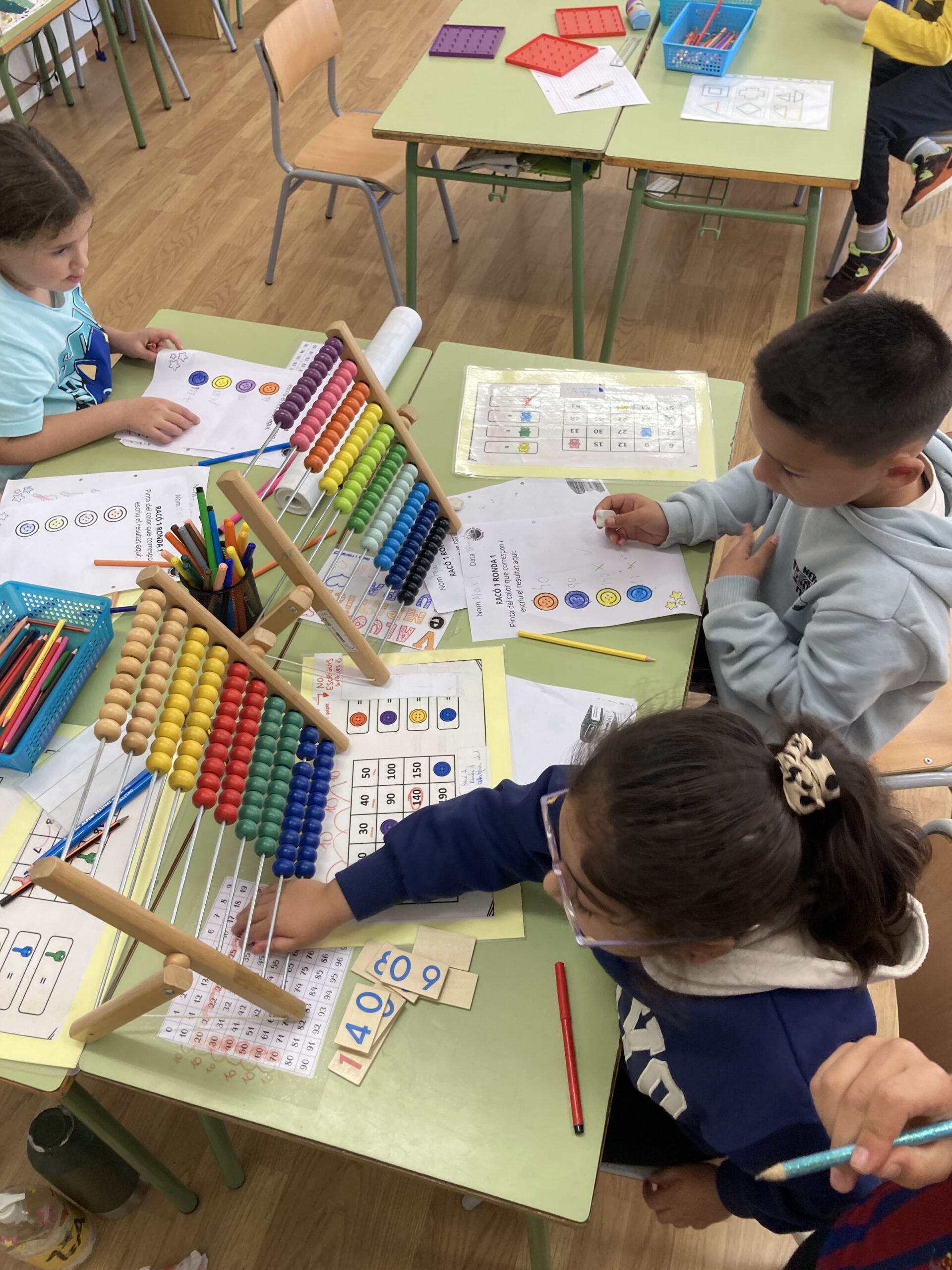 Al cicle inicial, dos cops per setmana treballem per racons l’àmbit matemàtic i l’àmbit lingüístic. Es tracta d’una proposta metodològica que ajuda a diversificar els diferents nivells i ritmes maduratius a l’aula. Es fa a través de la codocència, és a dir, dos mestres dins de l’aula.