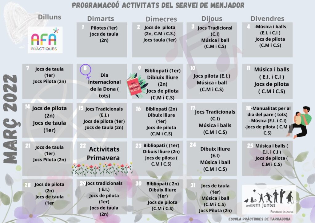 D’aquí en endavant us presentarem de manera mensual la programació d’activitats que durem a terme a l’estona de migdia.