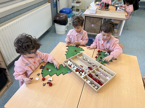 ESPAIS: JUGUEM AMB LES MATEMÀTIQUES: TREBALLEM L’ORIENTACIÓ ESPAIAL. SEGUIM EL RECORREGUT QUE ENS MARQUEN LES FLETXES PEL PANELL D’IMATGES DE NADAL, DE MANERA MANUAL. UN COP FET AIXÒ, FEM EL MATEIX PERÒ AQUEST COP DONANT LES ORDRES A UN DELS NOSTRES ROBOTS, LA BEE-BOT. JUGUEM AMB LES LLETRES: SEGUIM AMB LA CONSCIÈNCIA SIL·LÀBICA. CLASSIFIQUEM IMATGES