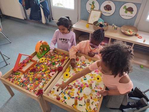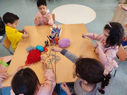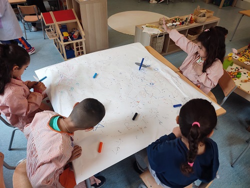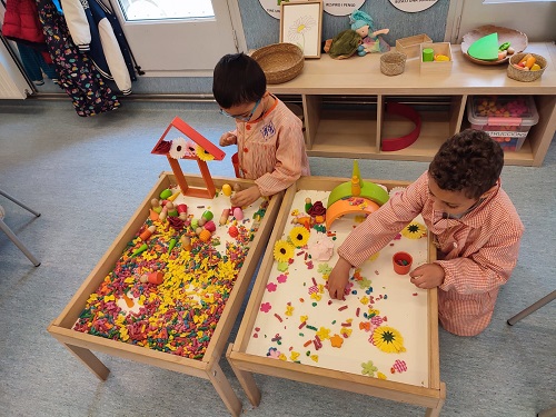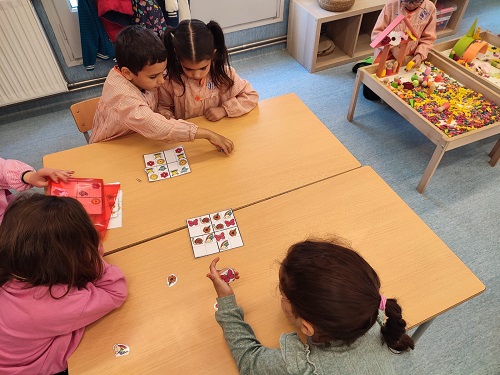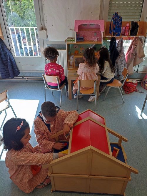SOMIEM. Les casetes de fusta ens continuen donant molt joc. Deixem volar la nostra imaginació tot creant històries i ens expressem oralment amb els companys i companyes de l’espai.