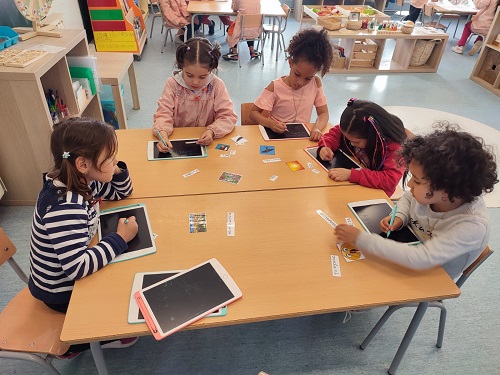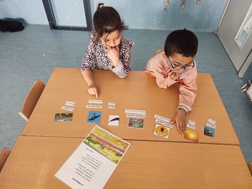 JUGUEM AMB LES LLETRES. Treballem el vocabulari del poema de la primavera que ja ens sabem de memòria. Aparellem les paraules amb les imatges i les escrivim a les pissarres màgiques. A més, comencem a introduir la lletra lligada!