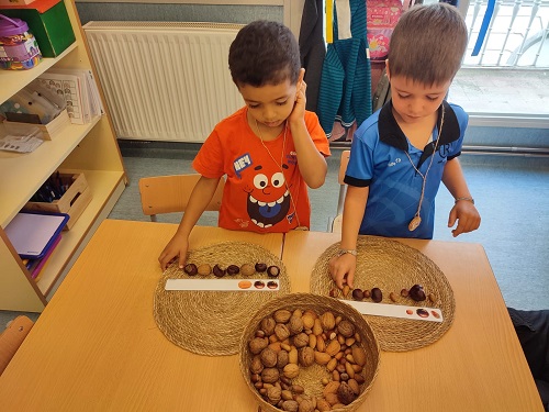 JUGUEM AMB LES MATEMÀTIQUES. Fem seriacions amb fruits secs. Anem augmentant la dificultat de les sèries.