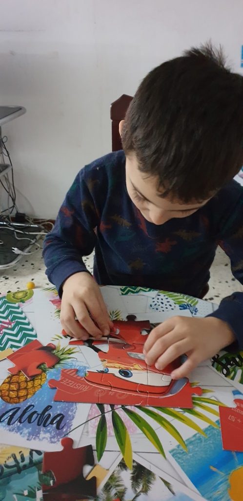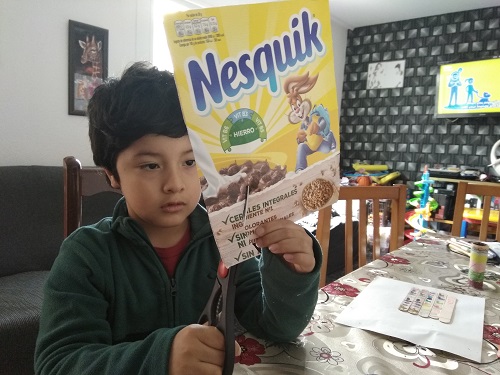 A la segona activitat havien de crear un trencaclosques a partir d’una capsa de galetes, cereals,… i després fer-lo. Aquesta és una manera de crear joguines a partir de material de rebuig.