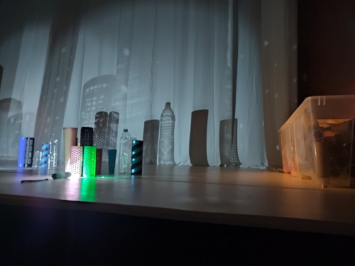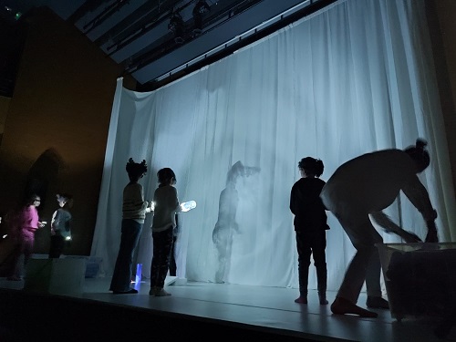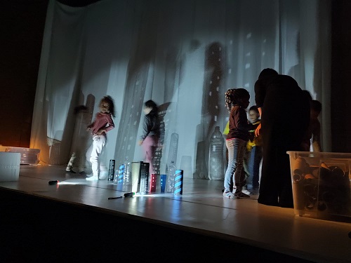 La setmana passada els nens i nenes d’I5 vam anar al Caixa Forum a veure l’espectacle “Una ciutat d’ombres”.  Entre tots vam anar construint una ciutat de llums i ombres al ritme de la música i la dansa contemporània.