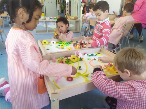 CONSTRUMONS: Els nostres minimons continuen tenint els colors de la primavera. Deixem volar la nostra imaginació i creem escenaris amb flors, escurapipes de colors, nins i molts animalets!