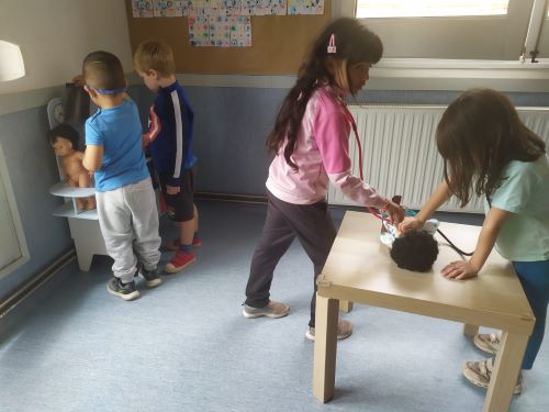 SOMIEM: Continuem fent de metges i metgesses a la nostra consulta de la classe. Ens encanta curar a les nines!