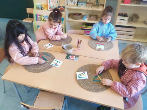 JUGUEM AMB LES MATEMÀTIQUES: Creem figures amb palets de colors. Ens orientem en l’espai.