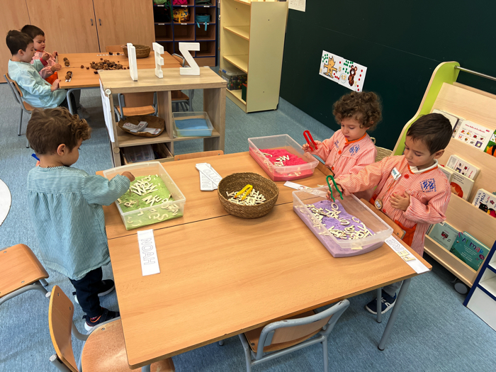 JUGUEM AMB LES LLETRES: CONTINUEM APRENENT LES GRAFIES I ELS SEUS SONS A PARTIR DEL NOSTRE NOM I ELS DELS COMPANYS/ES DE L’AULA. AQUEST COP HO FEM BUSCANT LES GRAFIES QUE NECESSITEM PER COMPOSAR-LOS DINS LA SAL DE COLORS, AGAFANT-LES AMB LES PINCES PER TREBALLAR LA MOTRICITAT FINA.
