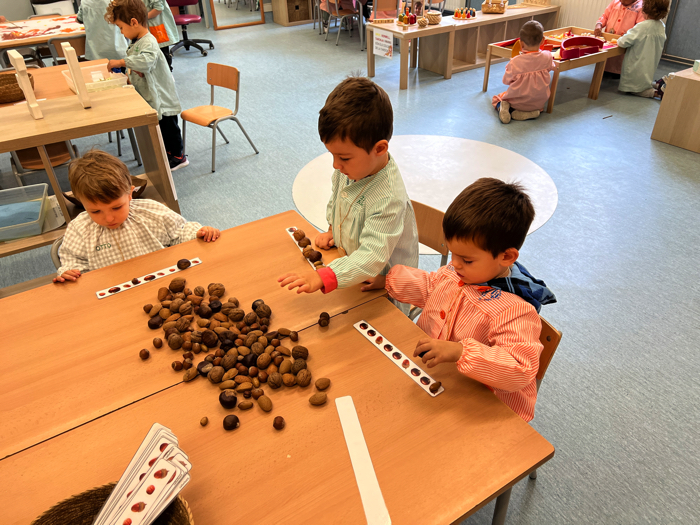 JUGUEM AMB LES MATEMÀTIQUES: FEM SERIACIONS AMB ELS FRUITS SECS DE LA TARDOR AMB DOS I TRES ELEMENTS, PRIMER SEGUINT EL MODEL I DESPRÉS SENSE.