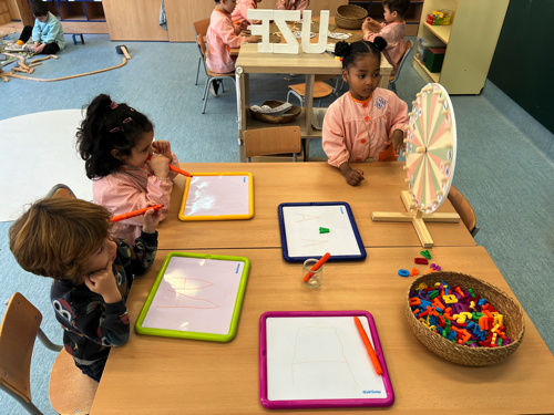JUGUEM AMB LES LLETRES: IDENTIFIQUEM LA LLETRA INICIAL DE LA IMATGE QUE ENS MARCA LA NOSTRA RULETA I TOT SEGUIT L’ESCRIVIM A LES PISSARRES.