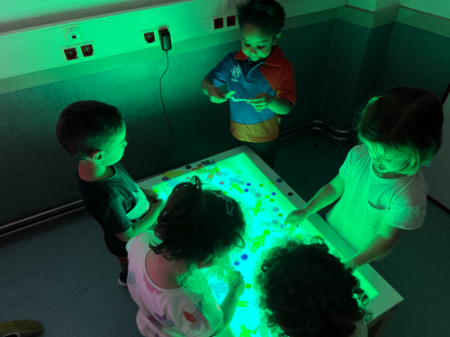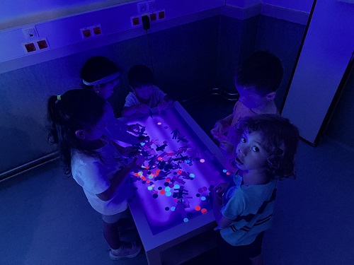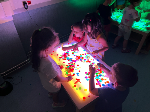 AQUESTA SETMANA HEM EXPERIMENTAT AMB ELS NOSTRES SENTITS MITJANÇANT LES TAULES DE LLUM. HEM DESCOBERT QUE ELS OBJECTES CANVIEN DE COLOR SEGONS LA LLUM QUE TENIM.