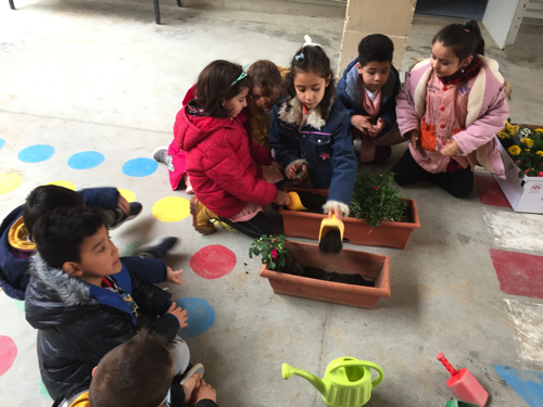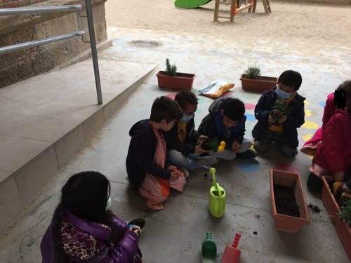 HEM POGUT OBSERVAR I RECORDAR LES DIFERENTS PARTS DE LES PLANTES I HEM APRÈS A PLANTAR-LES, TENINT EN COMPTE EL QUE NECESSITAVEN, FER UN FORAT, POSAR LA PLANTA, POSAR-HI TERRA I FINALMENT REGAR-LES.