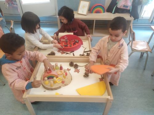 JUGUEM AMB LES LLETRES: Ara que ja quasi ens sabem de memòria el poema de la tardor hem començat a treballar el seu vocabulari. Ens fixem molt bé en els sons d’algunes de les seves paraules i les confegim amb pinces on hi ha les lletres que la formen.
