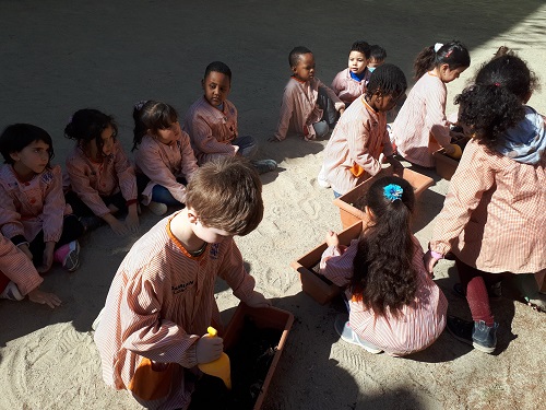 El dimarts vam plantar plantes amb flors i aromàtiques a les jardineres que hi ha al pati i, també, al balcó de la nostra aula. A partir d’ara, hem de cuidar-les molt i veure com creixen.