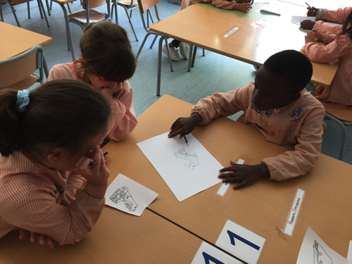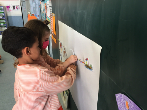 ENTRE ELLS, VAM CONÈIXER A PABLO PICASSO I VAM ANALITZAR UNA DE LES SEVES OBRES MÉS FAMOSES, EL GUERNICA. I ENTRE LES DIFERENTS ACTIVITATS QUE VAM FER, VAM ELABORAR EL NOSTRE PROPI GUERNICA ENTRE TOTS I TOTES. EN GRUPS DE 2 O 3 VAM DIBUIXAR I PINTAR ELS DIFERENTS PERSONATGES QUE EL CONFIGUREN I UN COP FET AIXÒ EL VAM COMPOSAR.