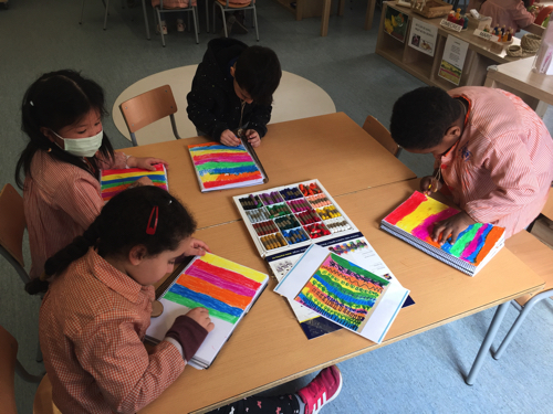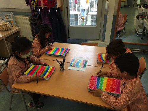 SOM ARTISTES: COMBINEM ELS COLORS PROPIS DE LA PRIMAVERA I POSTERIORMENT HI REPRODUÏM DIFERENTS TRAÇOS EN CADA UN D’ELLS.
