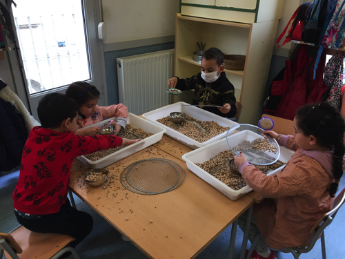 FEM I DESFEM: A PARTIR DE SEDASSOS AMB DIFERENTS TIPUS DE FORATS EXPERIMENTEM AMB LLAVORS DE MIDES DIVERSES, CIGRONS, LLENTIES, XIA I SESAM. UN COP FET AIXÒ, LES CLASSIFIQUEM EN BOLS SEGONS LA SEVA GRANDÀRIA.