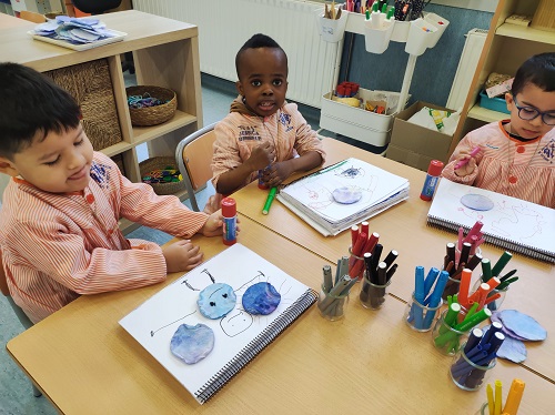Hem creat paisatges d’hivern, hem treballat el vocabulari relacionat amb l’estació i la lectoescriptura a partir d’aquest, hem tintat cotons amb pipetes i pintura de colors freds…