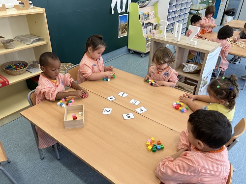 JUGUEM AMB LES MATEMÀTIQUES: JUGUEM AMB ELS DAUS PER TREBALLAR EL CÀLCUL I EL COMPTATGE I ALHORA LA GRAFIA. PARTIM AMB QUINZE MULTICUBS DE COLORS I TIREM EL DAU PER ORDRE. GUARDEM EL NOMBRE DE CUBS QUE SURT AL DAU FINS QUE ALGÚ SE’N QUEDA SENSE.