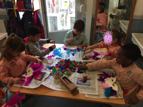 SOM ARTISTES: ELABOREM EL NOSTRE ANTIFAÇ PER CARNAVAL, PRIMER EL PINTEM I DESPRÉS LI ENGANXEM PLOMES DE COLORS. ENS HAN QUEDAT XULÍSSIMS!!!