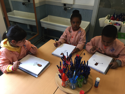 TAMBÉ ENS HEM DIBUIXAT AMB LA DISFRESSA QUE ENS AGRADA A PARTIR DE LA FOTO DE LA NOSTRA CARA!!!