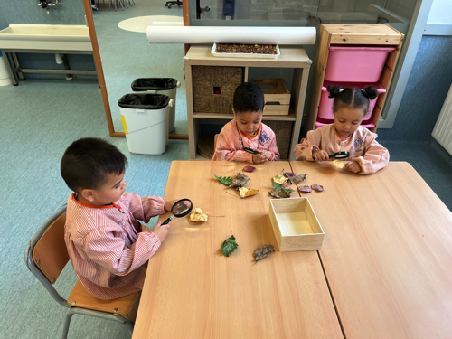 FEM I DESFEM: MANIPULEM AMB LES LUPES I OBSERVEM LES DIFERENTS FULLES DE LA TARDOR, LA SEVA FORMA, EL SEU COLOR…
