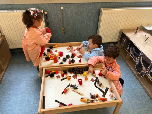 CONSTRUMONS: SEGUIM AMB ELS NINS DE COLORS DE LA TARDOR I ALTRES ELEMENTS, PINYES, FULLES, PALS I HI AFEGIM ANIMALS DE BOSC.