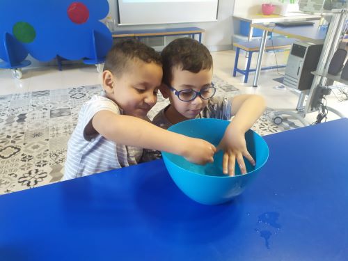 Amb l’oïda vam escoltar que només fa soroll si la sacsegem. Amb la vista vam veure que l’aigua és incolora però que es tinta si la barregem amb paperets de colors. Amb el tacte vam descobrir que l’aigua se’ns ecapa entre les mans i que quan és congela es transforma en un glaçó ben fresquet. Amb el gust vam descobrir que l’aigua no té sabor a no ser que la barregem amb algun altre element com la sal o el suc de llimona. I amb l’olfacte ens vam adonar que l’aigua no fa cap olor a no ser que hi posem colònia o viangre per exemple.