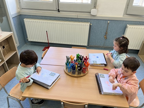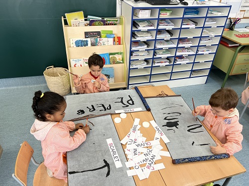 JUGUEM AMB LES LLETRES: SEGUIM TREBALLANT LES GRAFIES A PARTIR DEL PROPI NOM I DELS DELS COMPANYS/ES DE L’AULA. AQUEST COP PERÒ HO FEM UTILITZANT EL PERGAMÍ MÀGIC I PINZELLS.