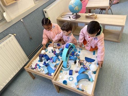 CONSTRUMONS: EN ELS NOSTRES MINIMONS S’ACABA L’HIVERN, I PER FER-HO I AFEGIM PEDRES DE COLOR BLANC I GRIS.