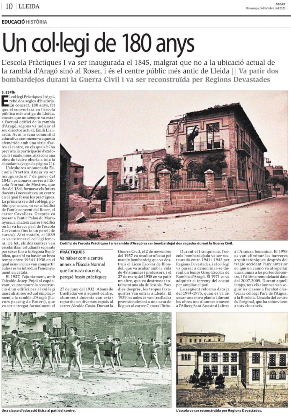 D’una banda, el diari destaca la celebració dels 180 anys de la nostra escola, la més antiga de Lleida, que continua formant i educant generacions d’infants amb la mateixa il·lusió i compromís de sempre. Ha estat una gran festa plena d’emocions, retrobaments i records, que posa en valor la nostra llarga trajectòria educativa.