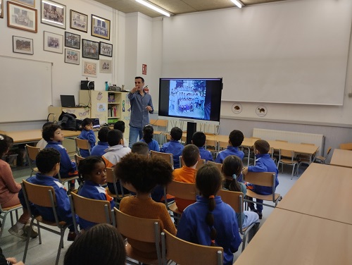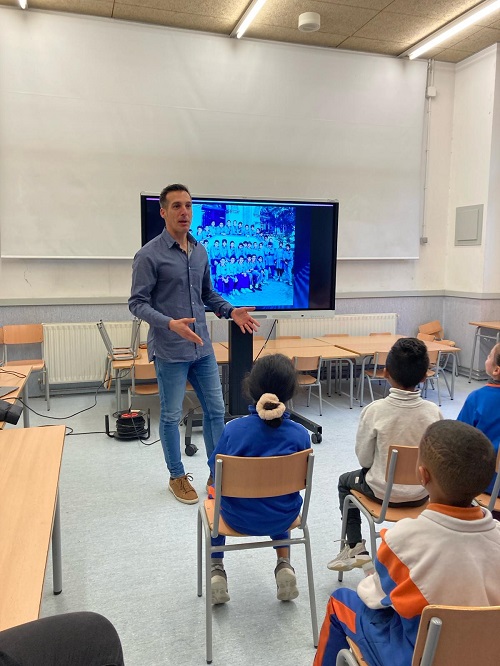 Xavier Estrada va ser convidat a l’escola per complementar el projecte interdisciplinari de les olimpíades i donar-nos una altra visió de l’esport i del futbol.