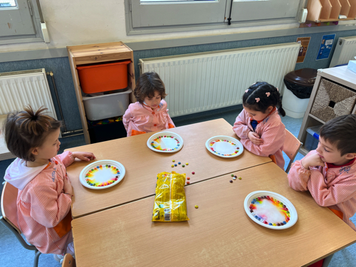 ESPAIS: JUGUEM AMB LES MATEMÀTIQUES: TREBALLEM LA LÒGICA REPRODUINT UN MODEL, SEGUINT L’ORDRE SEGONS LA FORMA, EL COLOR I LA POSICIÓ. JUGUEM AMB LES LLETRES: EL VOCABULARI DE CARNAVAL ENS SERVEIX PER SEGUIR CONSOLIDANT LA CONSCIÈCIA SIL·LÀBICA. HEM DE TROBAR QUANTS COPS DE VEU TÉ CADA PARAULA, BUSCAR-NE AQUESTA QUANTITAT GUIANT-NOS AMB EL DIBUIX IDENTICATIU