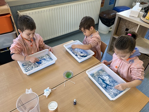 ESPAIS: JUGUEM AMB LES MATEMÀTIQUES: TREBALLEM EL RAONAMENT LÒGIC I LA PERSPECTIVA REPRODUÏNT ELS MODELS AMB ELS CUBS DE COLORS. JUGUEM AMB LES LLETRES: JUGUEM AMB EL BINGO SIL·LÀBIC PER RECONÈIXER EL SO DE DIFERENTS COPS DE VEU (SÍL·LABES) I IDENTIFICAR-LOS EN LA SEVA CORRESPONDÈNCIA GRÀFICA (LLETRES). SOM ARTISTES: PINTEM AMB UNA BARREJA D’AIGUA I